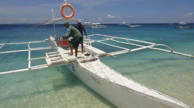 我们包的大船把我们开到balicasag岛,就抛锚停下来了,然后我们换好救生服,由超小的手划船带去浮潜地方。