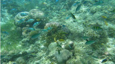 老天很给力,天好浪小。在吃早餐的时候,有个小菲过来推销出海,还保证我们能去巴黎卡萨岛的另外半边,最后我们以1300p成交。虽然晚了追不到海豚了,但是最后看到的海底景致绝对震撼。 在小菲的帮助下,我终于会浮潜了!看到了各种色彩斑斓的鱼,目不暇接。海底世界太美了!这边还是触手可及的珊瑚,那边就是深不见底的大断层。我还在断层那里看到了Diver,我们处于同一地点,不同深度,感觉好美妙!下次,我也要去体验潜水!
