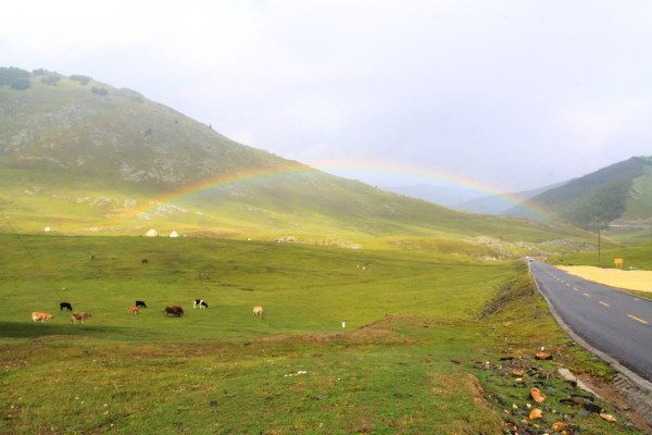 出了喀纳斯,驱车赶往禾木,路上遇到了2道美丽的彩虹,于傍晚到达禾木,原本是想住在雷鸟俱乐部推荐的一个客栈,可是到了禾木售票处,来了一个拉客的,说他们能洗澡,100元/晚,我们马上就答应了,结果显示我们是正确的。丽峰山庄,装修比较新,也是小木屋,但比我们在喀纳斯住的小木屋更好些,1门是开进去有2个房间的,所以相对于有2层,晚上更暖和,不需要取暖器也不冷。后来拿了名片,知道老板姓郭,