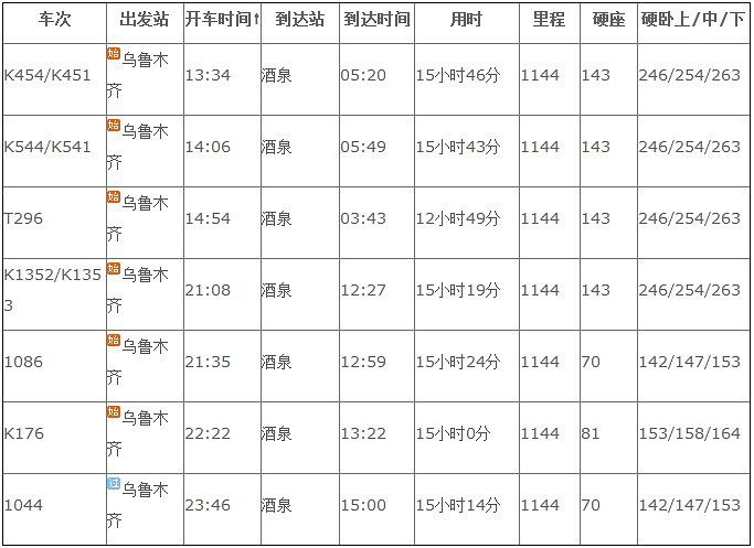 往酒泉的火车很多,但我们选择到达时间不会太早也不会太晚的那一班。也附上时间表给大家做个参考。