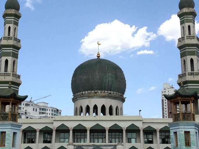 由于拍照时间占用较多,我们2点才出来并在旁边吃了碗牛肉面,然后搭车回市区去东关清真大寺,在那还看到了穆斯林的礼拜。