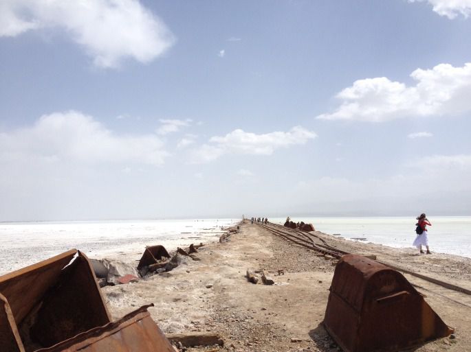 有遍地的盐晶,还有穿过湖中央的老铁路。盐湖门票并不贵(25),但要体验火车的话就挺贵了(60)。我们并没有买小火车的票,走在铁