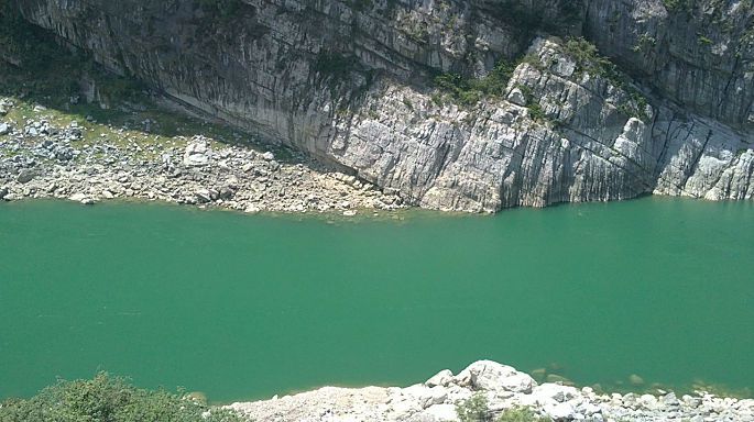 从涪陵往南,火车又行进在乌江东岸。美丽的乌江,山美水美,尤其这碧绿的江水,要不亲眼所见,很难相信这颜色是真的。