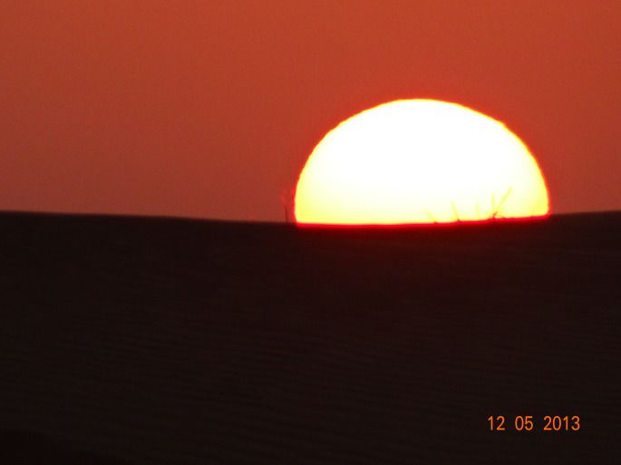 沙漠黄昏半日红。