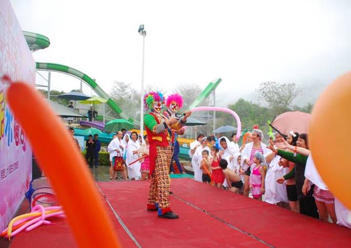 差不多2点的时候,欢乐水世界区域舞台区域就开始活动了,就知道今天3.8节活动一定不少。开场没多久,就有小丑上台表演,现场大派气球,可以说人手一个气球,园区路上还遇到高高的那种小丑也在送气球,之后还有魔术表演,水上的游戏等等,参与游戏获胜了还有抽奖抽,现场参与游戏的人,特别多,我和闺蜜参加了有吃有玩的“甜蜜吃货”,虽然输了,不过还是有小气球拿,吃的雪梨味道还可以啊。