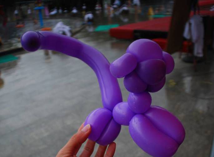 这头高高的小丑现场也给大家派气球来着
