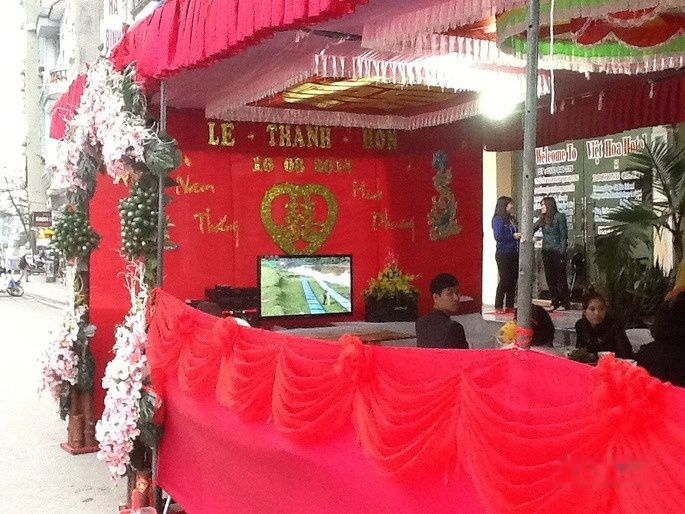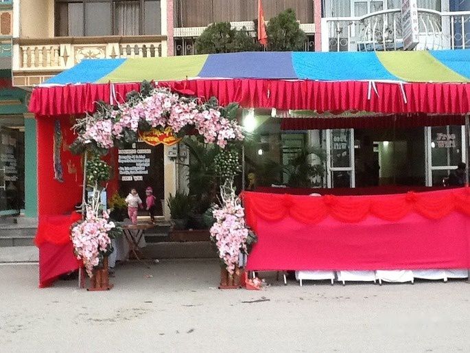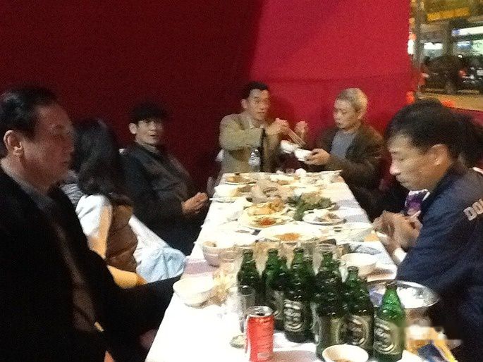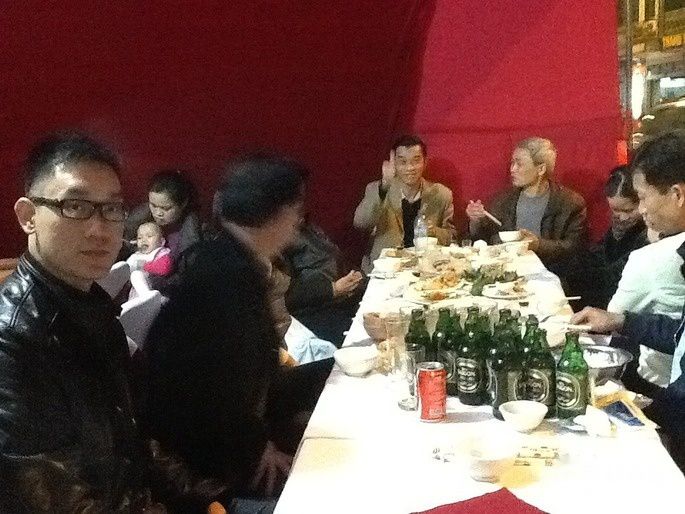 今天(3月15号)傍晚在下龙湾漫步,马路旁看到一家越南人举办婚礼前奏宴请,我上前向他们祝贺新婚快乐。有一位长者邀请我参加他们的宴请,并请我喝一小杯黄酒。