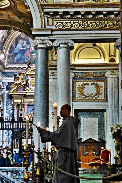 赶巧今天是星期日,教堂里正在做礼拜。与电视看到的布道不同,主教(抑或是牧师,搞不清楚)正在唱圣歌。主教的嗓音很好听,庄严肃穆的歌声回荡在大理石砌成的大教堂里,让人不由得觉得肃然起敬。