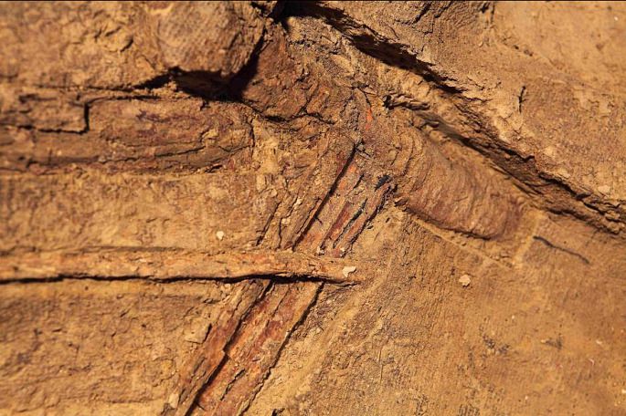 0.2米,间以铁栓板连接。 同时还出土有木桩、铁栓板、铁钉、墨玉片、开元通宝等文物。尤以墨玉片最为珍贵,现为国家3级文物,收藏于高陵县文化馆。