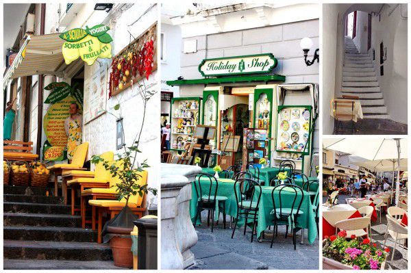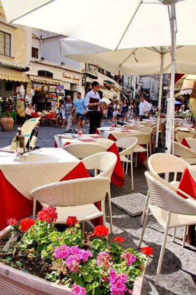 山城上拱门斜梯曲折遍布,老石头长满了常春藤一类的漂亮植物,还有开得热烈的紫藤,爬了满满一墙壁,虽不如波西塔诺精致,却也是我大爱的南欧风情,它不像刻意为游客准备的,因而更生活化。石灰斑驳的阳台上,晾着五颜六色的衣服。城里多是小街小巷,居然还有汽车开进来凑热闹,恨不得把路人挤到墙上变壁画,平地在此处是稀缺资源,店家因地制宜,在台阶上摆上椅子,连一小块平地也不放过,只摆一套桌椅,俨然专为情侣而设。在讲究秩序和优雅的欧洲,南意人活得实在有些写意随性!