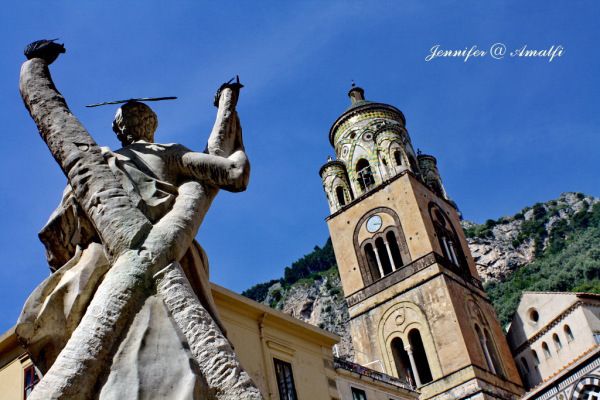 美丽的地方总不缺少浪漫的传说,就像波西塔诺有海妖赛壬的传说,阿马尔菲也有浪漫凄美的故事:相传希腊神话中的英雄海格力斯爱上了美丽的精灵Amalfi,可惜红颜薄命,在某天忽然香消玉殒了。海格力斯伤心欲绝,将精灵的遗体带到世界上最美的地方,亲手埋葬挚爱,并在此建立城市,这便是阿玛尔菲小镇的由来。