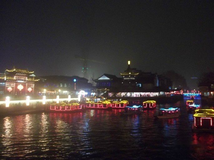都说夜间的秦淮河是最热闹的,素有“六朝烟月之区,金粉荟萃之所”,虽然如今没有了烟花柳巷之气,但名气响亮,来南京不如夫子庙秦淮河相当于去北京不逛长城哈。可以选择去做游船,门票80--100,我选择在桥上看风景。