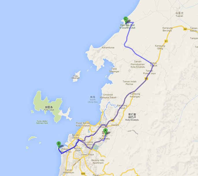 位于亚庇市中心以北的里卡士湾畔(likas bay),很近,乘车大概10分钟的路程,沿着码头旁边再旁边的路(Jalan Tun Fuad Stephen)走就到了,就是gaya街东侧平行的路,在gaya街旁边的时候叫