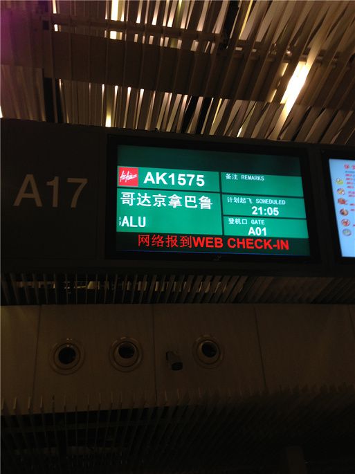 AK1575 21:05分出发 凌晨1点05分到亚庇