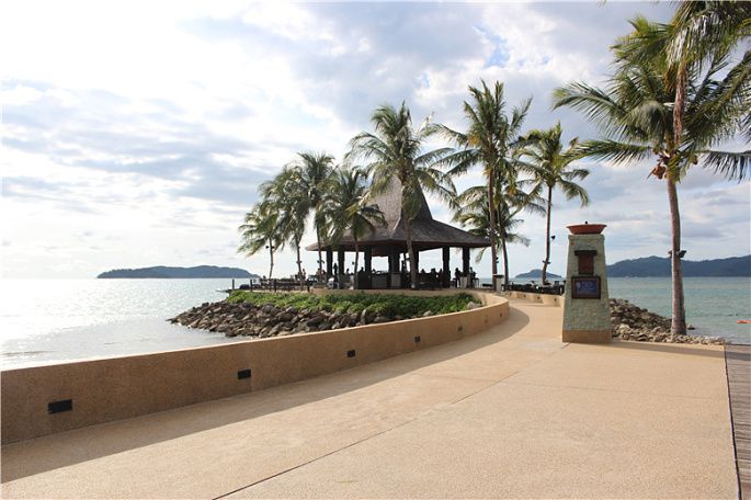 沿着海滩,步行不到1公里,沙滩尽头就是丹容亚路香格里拉酒店。这个香格里拉的海滩和酒店设施是可以随意进出和使用的 所以人也会很多 所以我们没有选择住在这个酒店 感觉有点吵~