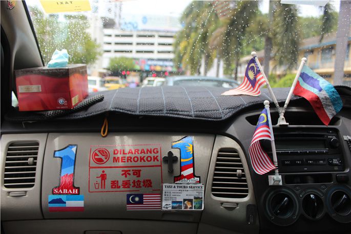 接下来我们驱车前往美丽的水上清真寺~我们去的时候刚好的马来西亚的国庆日 很多车尾部都会插上国旗~
