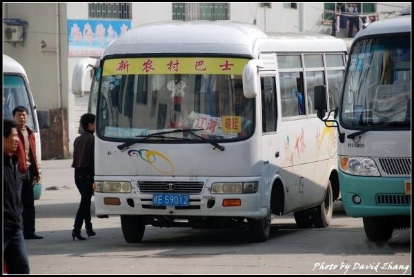 6日7:55,结帐离开客栈,路上吃了点早点,一碗豆浆要两元,一个油饼要4元!往前走到桥头,坐上了到县城的乡村小公共(6元x2)。