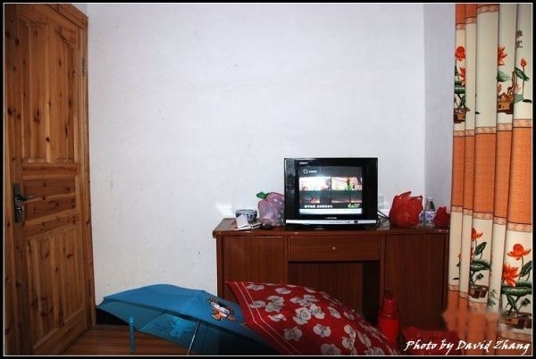 双人间,有电视,上厕所、洗澡得下楼,不找了,住。后来证明住就对了,不住就没有了,有也更贵。外面下起了小雨,放下背包,拿上雨伞,卢老伯带我们去附近一家餐馆吃饭。