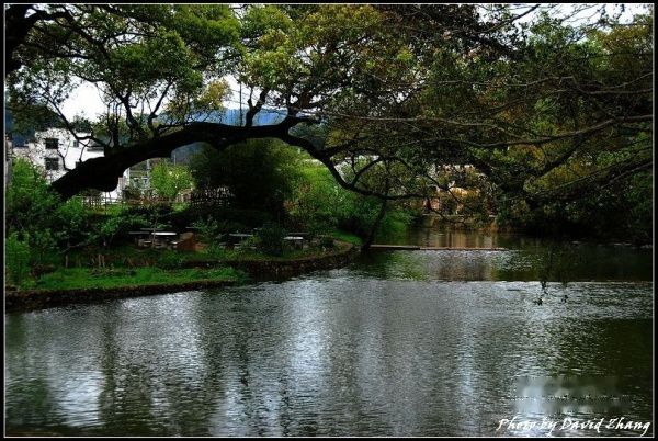 再往北走就是那棵最大的樟树王,依山而立,周围是青瓦白墙的民居,