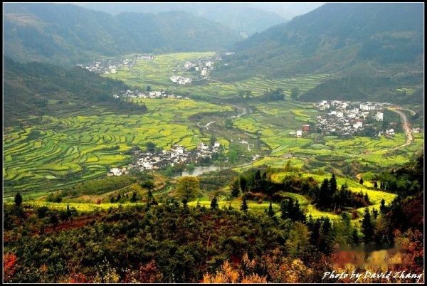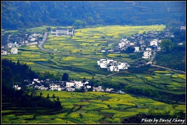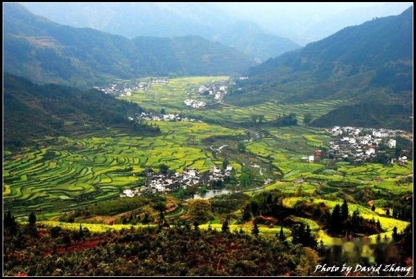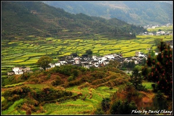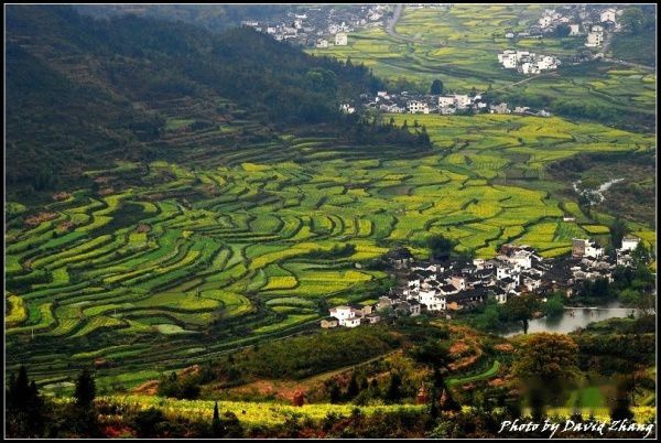 网上介绍,江岭或许是婺源最值得去的地方,那里漫山遍野的油菜花呈梯田状,从山顶铺散到山谷下。