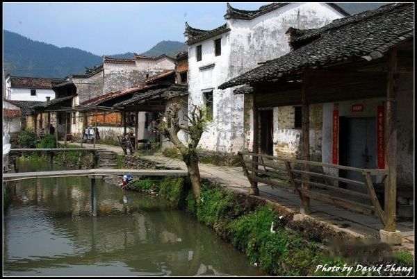 两旁错落有致的徽派民居,一座座小桥连接两岸。