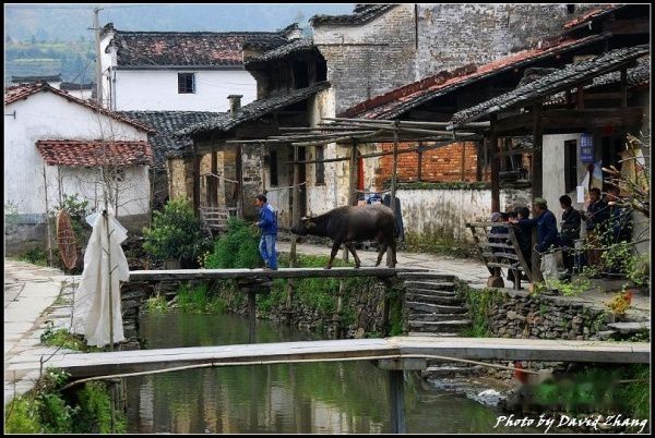 这里溪水涓涓,村里的人们在洗衣做饭,典型的小桥流水人家的景象。