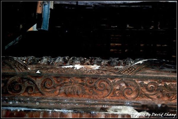 抬头看这根主梁上是三层雕刻,在当年可谓工艺精湛。