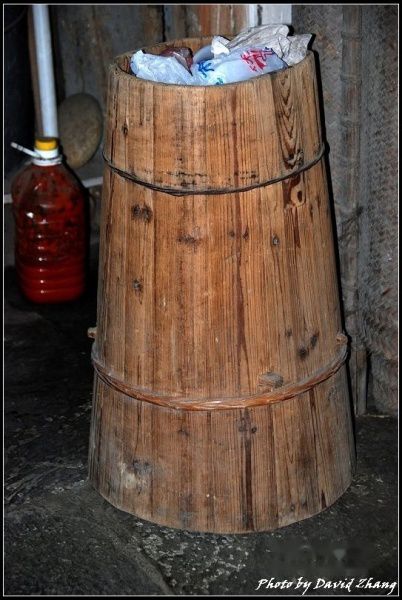 他家一个看孩子的木桶吸引了我们,小孩子放在里面,冬天最下面一层放上炭火,孩子在上面是很暖和的。