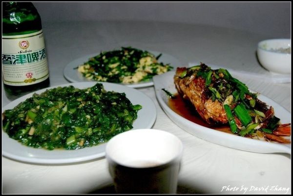 墨绿色的清明果很清香,蛮好吃的。餐馆的免费茶还不错,比北京饭馆的强百倍,这地方可是出茶的。