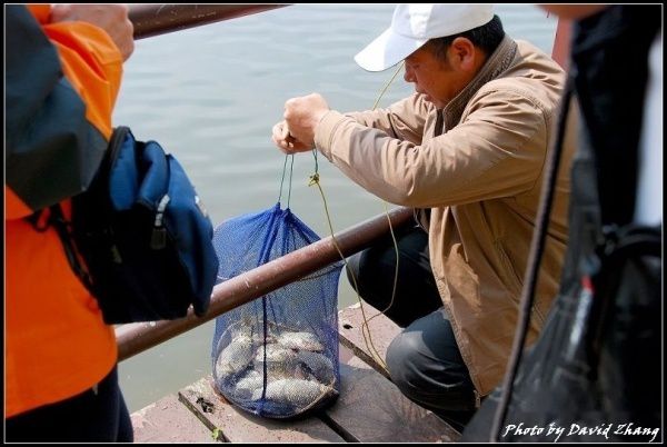不少人在湖边钓鱼,鱼是人工饲养的,每年交720元随便钓,有的垂钓者的鱼斛里已经有十来斤鱼了,