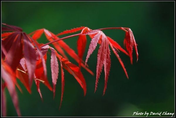 到处是花草绿树,火红的鸡爪槭在逆光下那么耀眼,