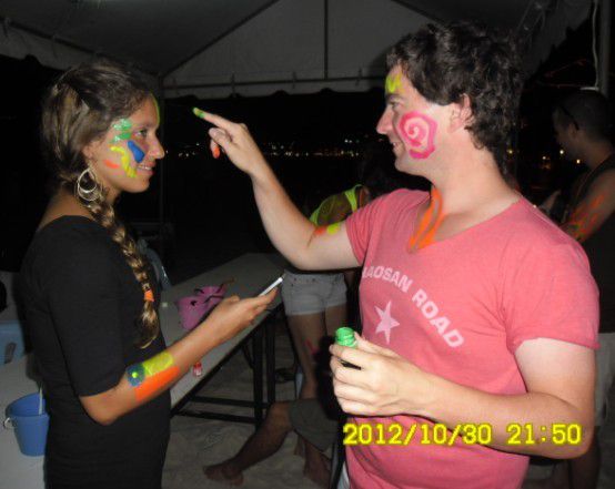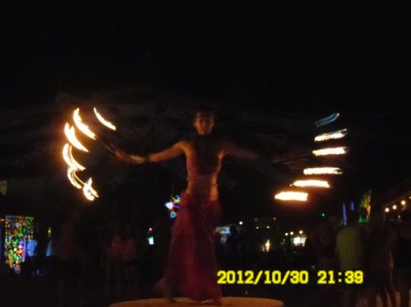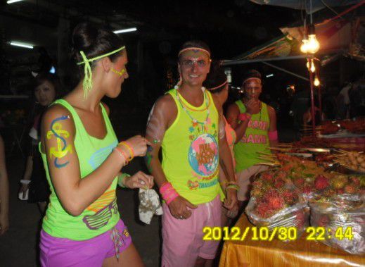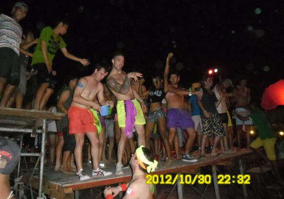 这种“Party”是每个农历月的满月日在苏梅岛北面的“phangan”(攀安)岛(又叫月光岛)举办,我们能遇到实属幸运,因为这是面向西方年轻人的狂欢活动,对我国的旅游宣传中根本没有,小黄在离苏梅岛那么近的普吉学习了两年多,也只是通过看泰国电影知道有这个活动,却从来没参加过,故他看到宣传海报时也心头狂喜,连呼“幸运”!“歪打正着”!