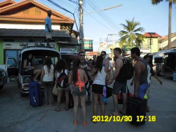 在等待的时间里,上岛参加狂欢的游客仍旧一拨接一拨的抵达,泰国人面孔占一定数量了。小黄说第二天因为佛诞节全国休假,许多泰国人下班后赶来凑热闹,反正明天不上班。由于这个岛子远离大陆,又坐车又乘船的,折腾到这里就很晚了。