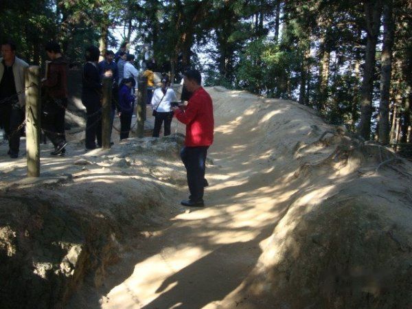 首先我们到达黄洋界,黄洋界在茨坪西北17千米处,海拔1343米,巍峨峻拔,形势险要,峰峦叠嶂,气象万千。时常弥漫着茫茫的云雾,好像汪洋大海一望无际,故又名“汪洋界”。1928年8月30日,著名的黄洋界保卫战就发生在这里,毛主席著名的《西江月》一词就是为这次伟大光辉战斗胜利而的。身临其境,依稀听到当年隆隆炮声。至今保留着当年的哨口工事、红军营房以及毛泽东、朱德和红军战士从宁冈挑粮走过的小路及路边的荷树等,在隆隆炮声中留下了太多的慨叹……