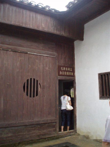 出了黄洋界哨口,我们前往黄洋界境内——大井的毛泽东同志旧居和红军医务所旧址。 大井旧居旧址有:会议厅、毛泽东、朱德、陈毅、王佐、宛希先住房。这些房屋都是后来修复的,先前的原屋早在一九二九年二月就遭敌人烧毁了,仅剩的会议厅的一堵残墙,修复时被镶嵌在了新墙中。另外旧居的院中有毛泽东同志读书石,两株神奇树。这两棵树几死几活听来让人无不惊叹。 先烈门的住房极其简陋,尤其床铺看起来竟是那么的狭小,很难想象他们是如何来得到很好的休息的。 **的旧址看了更让人心疼。伤病员所得到的救护是那么的有限,很多截肢的手术就愣是在没有麻药的情况下在一张破桌子上就进行了,实在佩服他们的毅力,不由得再次肃然起敬。 这是当年毛泽东常坐的读书石。听导游说当年国民党在山上实行“三光”政策时,惟独这块石头保存下来。主席经常坐在这块石头上,为中国革命的命运把脉问计。