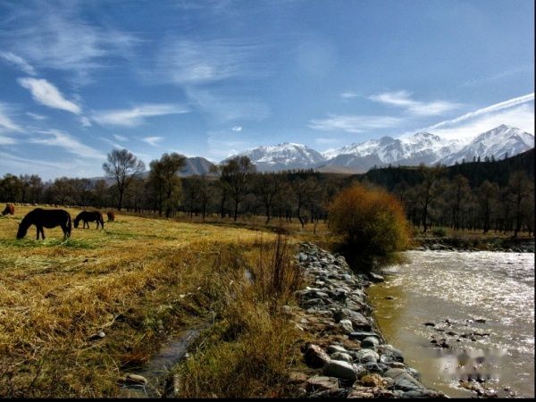 这里被蒙古人成为黄金牧场,可见它水草丰美的程度,路上壮美的景色把我们都看痴了。