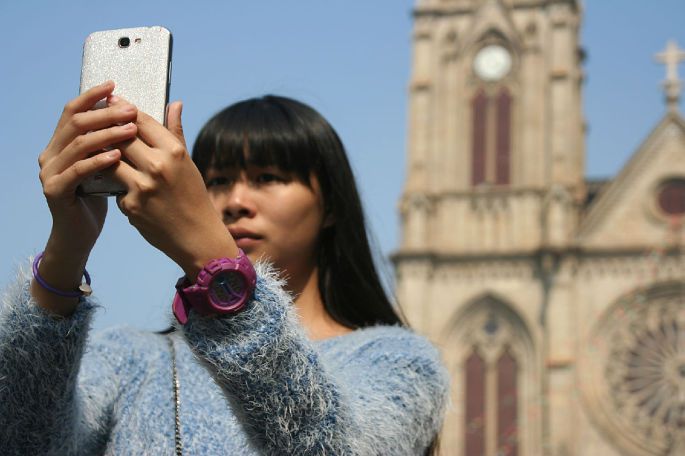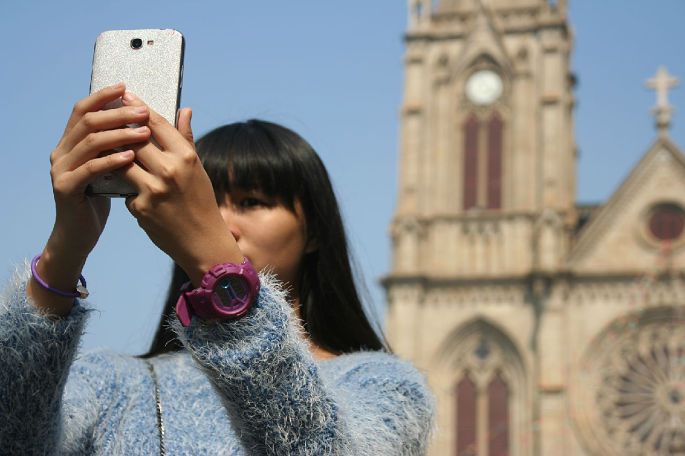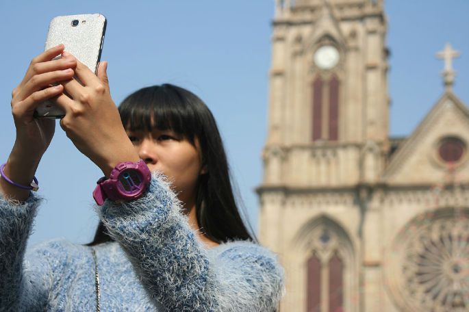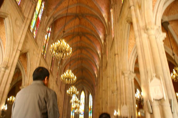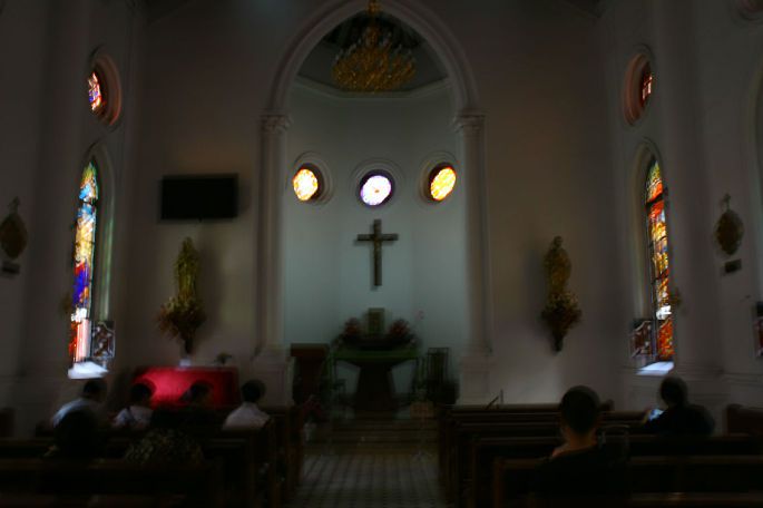 里面不能拍照,没看取景框直接举起相机拍的,怕被工作人员看到。我去的时候刚好遇到教徒在做礼拜。