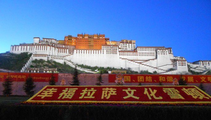 布达拉宫前面的广场,为了庆祝雪顿节而搭建了舞台,我看了他们的彩排,彩排结束已经是彻底黑了,看了广场上被彩灯映衬的布达拉宫,我依依不舍的离开了这里。