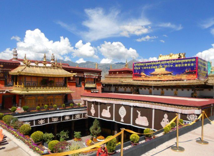我从邮政局坐了人力三轮车到丹杰林路,就来到了大昭寺广场。在广场附近的刚吉藏餐馆吃了饭,如果吃不惯藏餐,大昭寺广场有德克士。下午两点多开始排队买票。大昭寺的参观是分时段的,上午7:00-12:00;下午15:00-18:30.大昭寺门票是85元/人。