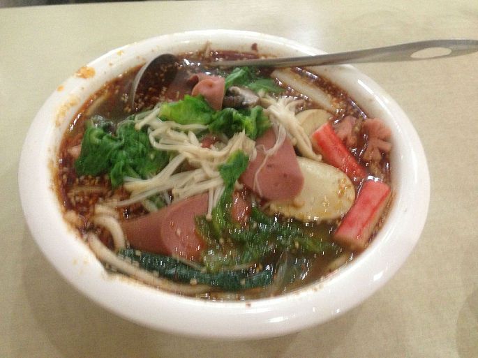 到了房间,把东西放下,稍微休息了几分钟,我就准备先去吃个饭,因为已经接近中午,早上起的太早,路上也没有吃东西。可出去一看,虽然是一条繁华的大街,可是吃饭的地儿都在小巷子里,虽然我平时吃饭不怎么讲究,但是起码得干净吧!在小巷子里的小店,因为破旧,又有点儿小,总是感觉不干净。但是寻了一圈下来,街面上除了德克士、肯德基这样的快餐店,还有两个卖肉夹馍的小店,装修的不错,但是还没等到走到楼上,就在下面被叫住了,说还没开始营业。无奈之下,我还是进了路边巷子里的小店,找了一家卖碗烩的店,我一个人嘛!点了一份最小的,结果上来一大碗。我的天啊!看着卖相还不错,吃了才知道,只有表面上做的很漂亮,其实下面全都是粉儿,所以我只把上面的菜全部吃光啦!哈哈!大家猜猜多少钱啊?