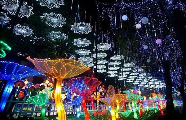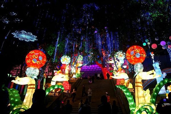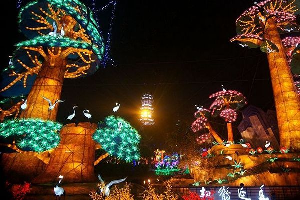 沿阶梯直下,满园的灯火让您目不暇接,千姿百态的灯组会让您领略不同的风情。