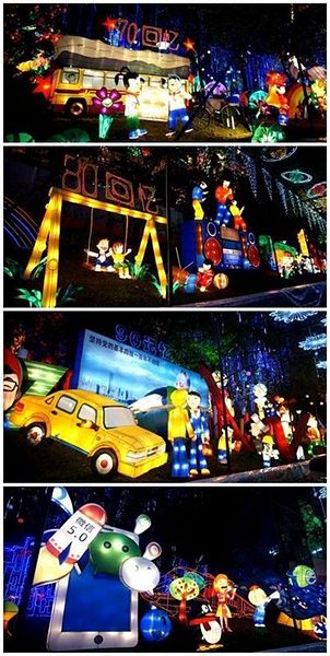 沿湖斜泊绿化带《年代秀》灯组由《70回忆》、《80回忆》、《90回忆》、《00回忆》灯景组成。这是一组承载了几代人美好回忆的场景式彩灯。