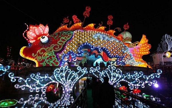 抛开停车、住宿、吃饭这些麻烦事不谈,彩灯公园内的灯会确实算是在其他地方见不到的阵仗了。那人山人海的场面,简直火爆得像是春运时的火车站,不亲眼来看看还真是感受不出来这种气氛。我就来抛砖引玉,发些图片让大家来欣赏欣赏这自贡灯会的美景吧。