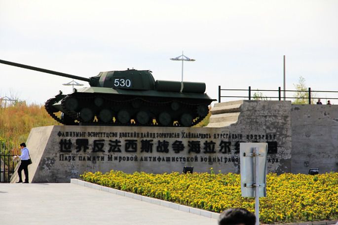王师傅带我们来的第一个景点:世界反法西斯战争海拉尔纪念馆,就在那个一处城市叫做北山口的地方,离城区很近的 ,师傅说这里是国家5A级的战争主题公园,还有地下工事遗迹,因为这种景点去的太多,而且收门票 ,司机师傅也不建议我们进去 ,为了不偏离游草原的主题 ,我们决定就在门口拍个照,留个纪念吧!