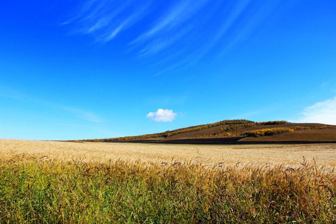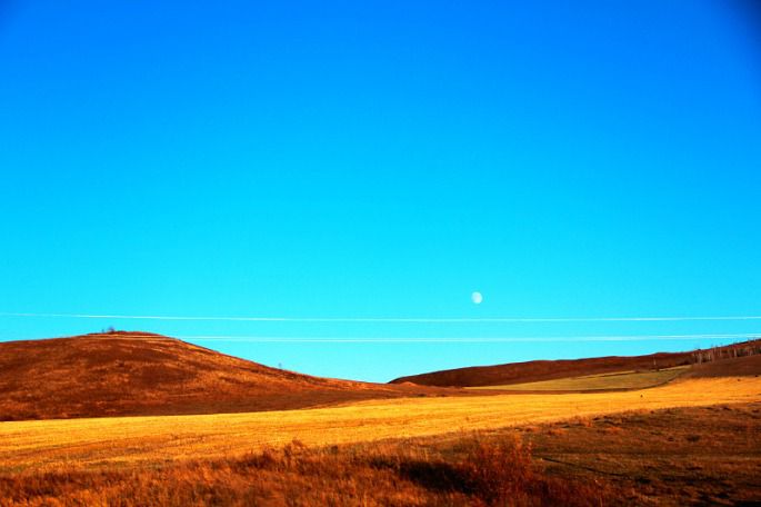 出了城市,先给蓝天来个特写 ,这湛蓝的天空是在城市少见的 ,我甚至觉得呼伦贝尔的天空竟蓝的惊艳