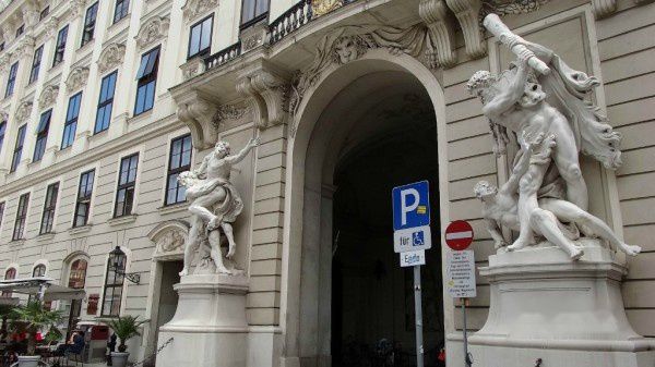 欧洲最大的议会(国会)大厦(Parlament),也是世界上最美丽的议会大厦,是奥地利国民议会与奥地利联邦议会所在地,1874年由建筑师特奥菲尔汉森设计。汉森曾在希腊雅典接受建筑教育,从他的作品风格中可以看出希腊建筑对他的深远影响,如立面使用希腊的科林特式柱头,而上面三角形的屋顶雕刻则是弗朗茨约瑟夫一世向17个民族颁发宪法的场景。该建筑采用的是罗马式建筑。它比较宽大,廊柱结构。上面的雕塑,用了希腊神话中的127个神的雕塑围着议会大厦一整圈。裸体雕塑,尤其是女性的丰满,曲线,男性的强壮,肌肉;
