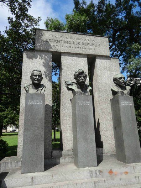 这是最早的一座话剧剧院,叫“市民剧院”,剧院旁边立着奥地利三位国父的雕塑,由他们起草并创立了奥地利宪法。