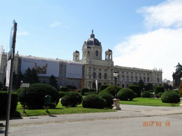右手的“自然历史博物馆”,于1889年开放,里面的馆藏于国立美术馆一样,原来是位于霍夫堡与贝维德宫内专供王公贵族把玩的艺术品。以历史文物,矿物学,古生物学,人类学,动植物学的化石与标本为主。有约2万4千年历史的维纳斯塑像与150年前的巴西鸟标本。