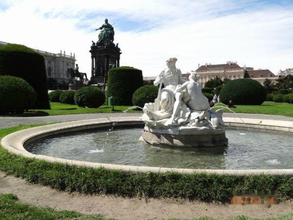 中间的雕塑是德国雕塑家“聪布施”的作品 - 欧洲的丈母娘“特蕾西娅”女皇。 基座的群雕中骑马的是将军,中间是首相。高浮雕表现的16位人物中有“海顿”与“莫扎特”,象征着“特蕾西娅”统治全盛时期的众多风云人物。