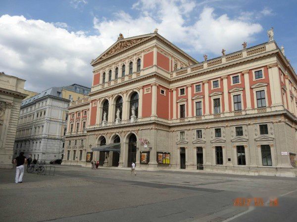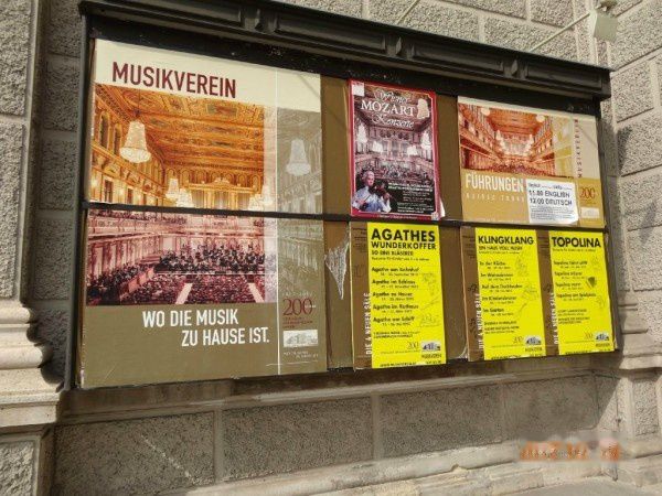 维也纳“爱乐协会大楼”-“金色大厅”1867年由“音乐之友”协会创建,是著名的维也纳爱乐管弦乐团的总部所在地,也是每年维也纳新年音乐会举行的地点。可容纳2000名观众,因包厢使用涂上金箔的18根柱子支撑,因而得名“金色大厅”。本想看当晚的音乐会,到了跟前才知道当晚没有任何演出!苦命呀 ~